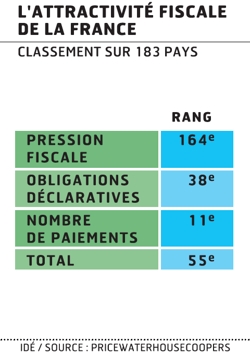 La France pointe au 164 e rang pour sa pression fiscale, mais au 38 e quant au temps nécessaire pour acquitter ses impôts.