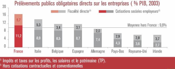 "Un handicap sur les entreprises équivalent à deux fois l'I.S." Source : OCDE, Calculs MEDEF.
