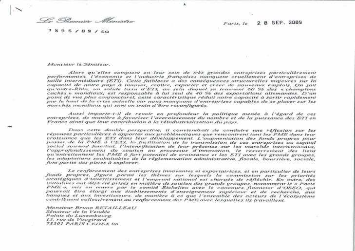Le Premier ministre a confié au sénateur Bruno RETAILLEAU une misssion auprès du ministre de l'Economie, de l'Industrie et de l'Emploi afin de conduire une réflexion sur les réponses à apporter aux problématiques que rencontrent tant les PME dans leur croissance que les ETI dans leur développement.