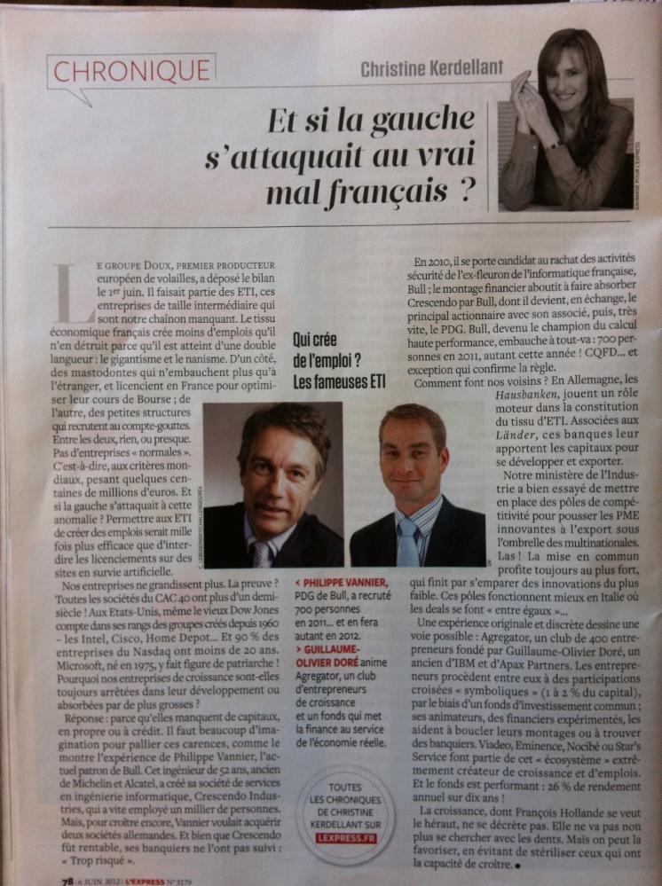 Chronique de Christine Kerdellant dans L'EXPRESS N°3179 du 6 juin 2012 :"Et si la gauche s'attaquait au vrai mal français"